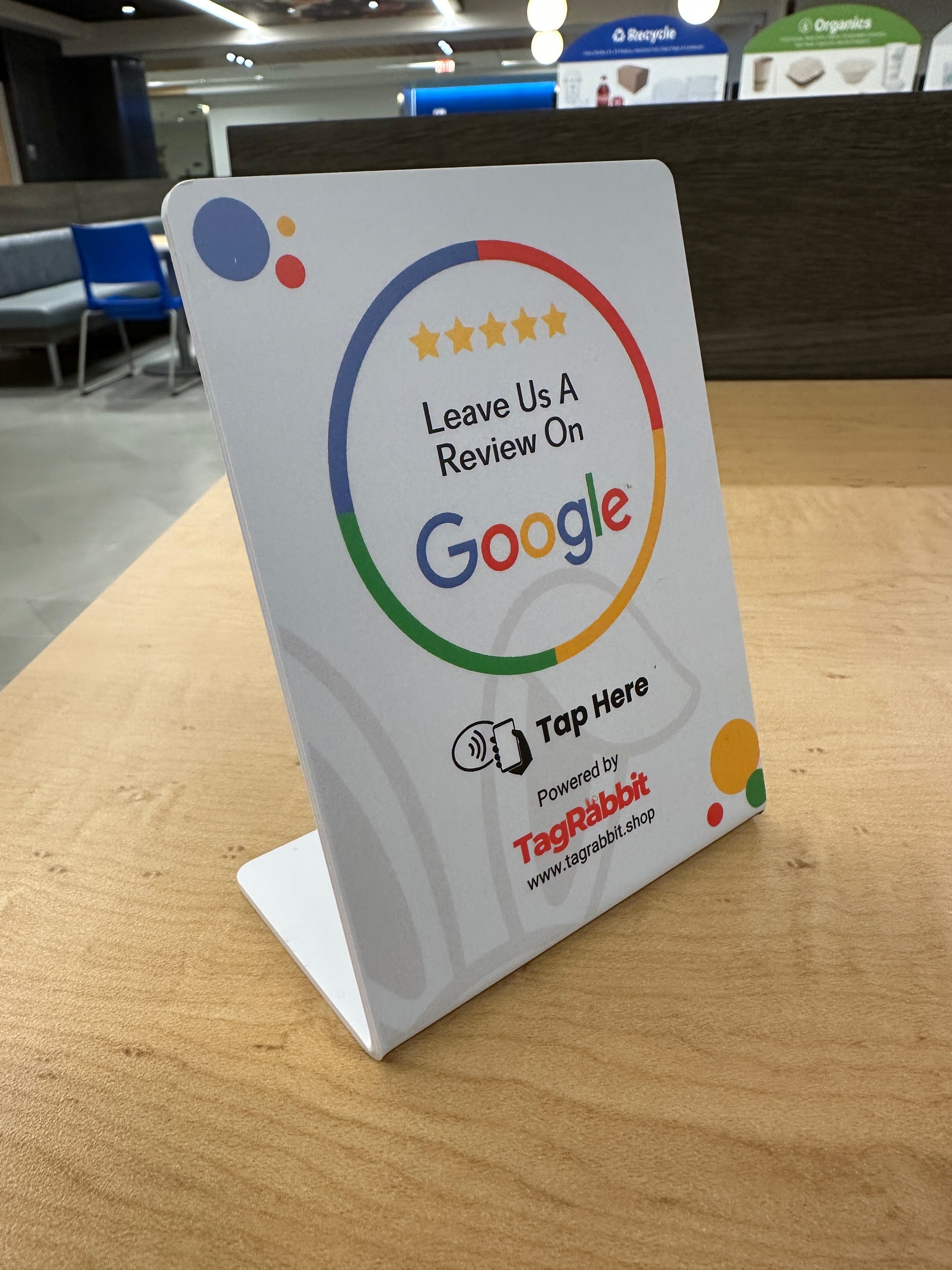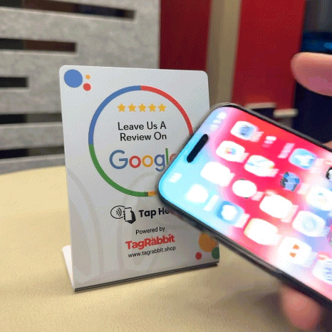 Simply tap the TagRabbit Google Review Card with an NFC-enabled smartphone, and it will automatically redirect the user to your Google review page. No apps or additional steps are required.